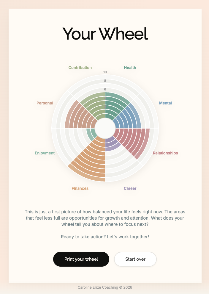 At the end, you’ll have a picture of how balanced your life feels right now. There’s no right or wrong answer, just a broader perspective.